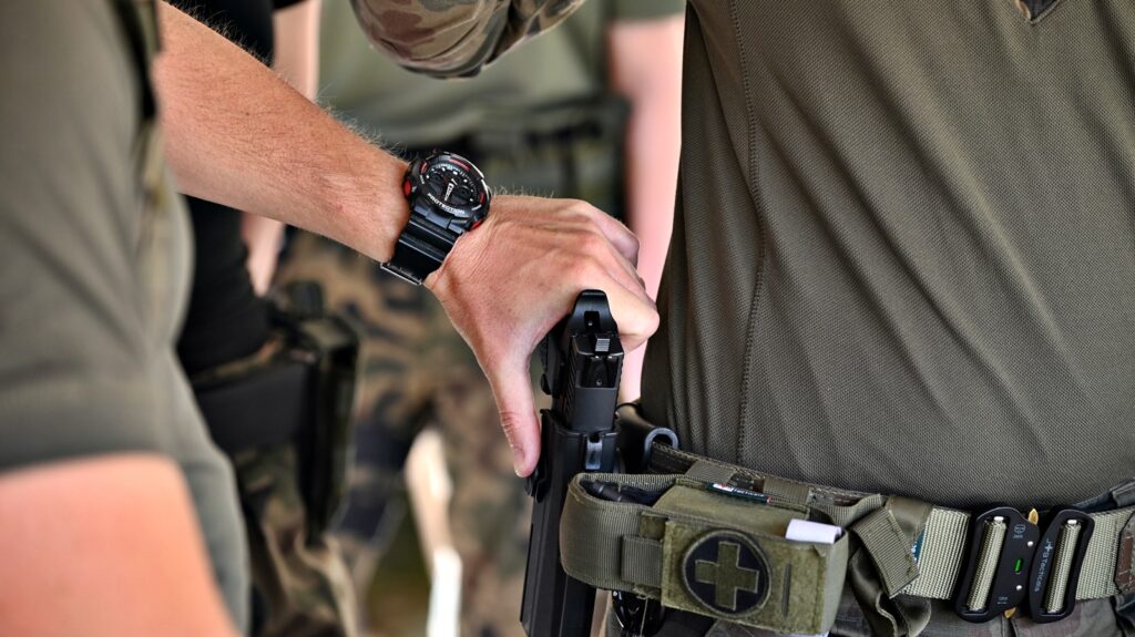 Uczniowie strzelali zarówno z pistoletu, jak i karabinka platformy AR-15 – wszystko w pełni kontrolowanych warunkach, na odpowiednio przygotowanej strzelnicy.