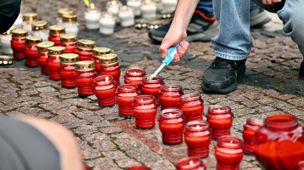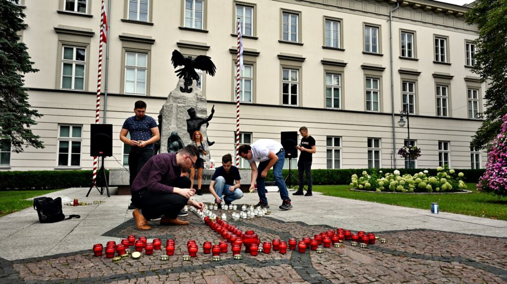 Wcześniej – tradycyjnie – o godz. 16:30 rozpoczęliśmy obchody przed pomnikiem Armii Krajowej, gdzie mieszkańcy ułożyli znicze w symbol Polski Walczącej pod pomnikiem Armii Krajowej. Była to wzruszająca i symboliczna chwila, która stworzyła godne tło dla dalszej części obchodów. ![]()