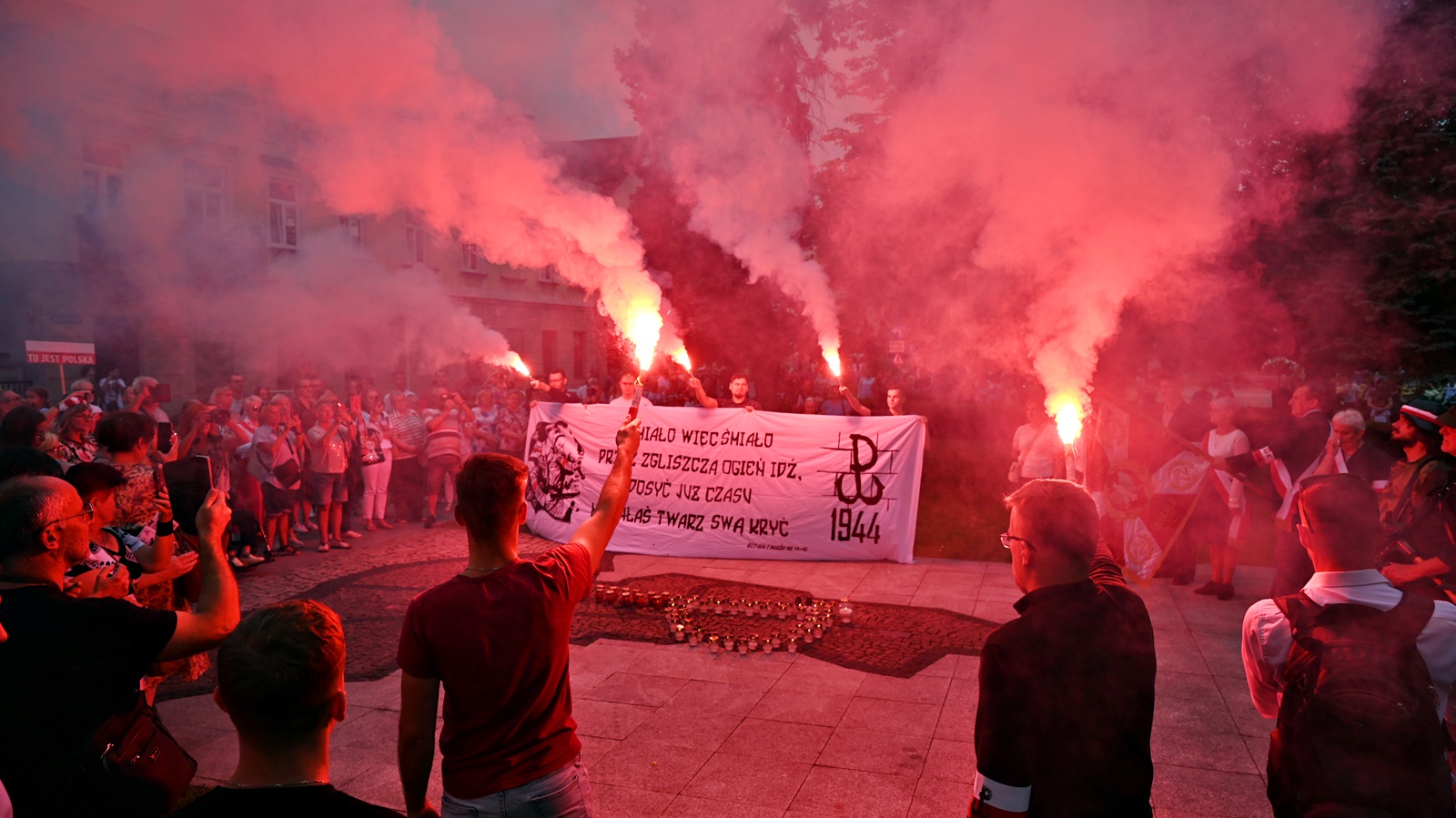 Wcześniej – tradycyjnie – o godz. 16:30 rozpoczęliśmy obchody przed pomnikiem Armii Krajowej, gdzie mieszkańcy ułożyli znicze w symbol Polski Walczącej pod pomnikiem Armii Krajowej. Była to wzruszająca i symboliczna chwila, która stworzyła godne tło dla dalszej części obchodów. ![]()