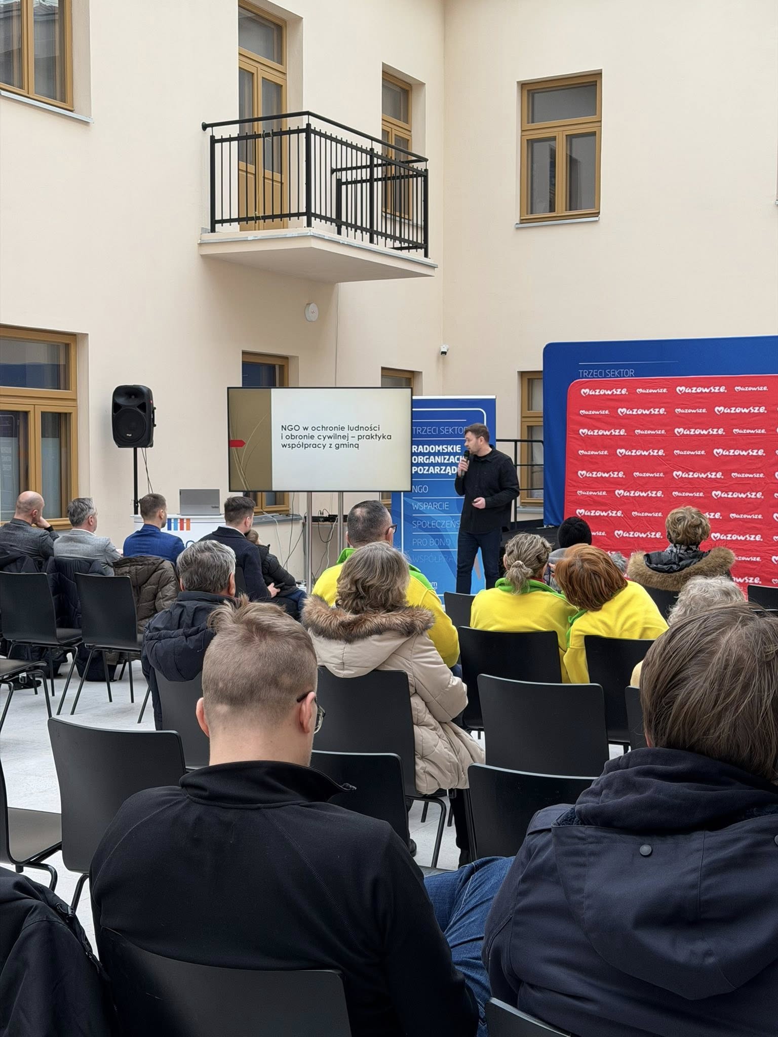W Centrum Organizacji Pozarządowych w Radomiu odbyło się spotkanie poświęcone współpracy organizacji pozarządowych z jednostkami samorządu terytorialnego w zakresie realizacji zadań związanych z ochroną ludności i obroną cywilną. W wydarzeniu uczestniczyli przedstawiciele różnych organizacji społecznych, zainteresowani rozwijaniem działań na rzecz bezpieczeństwa lokalnej społeczności.